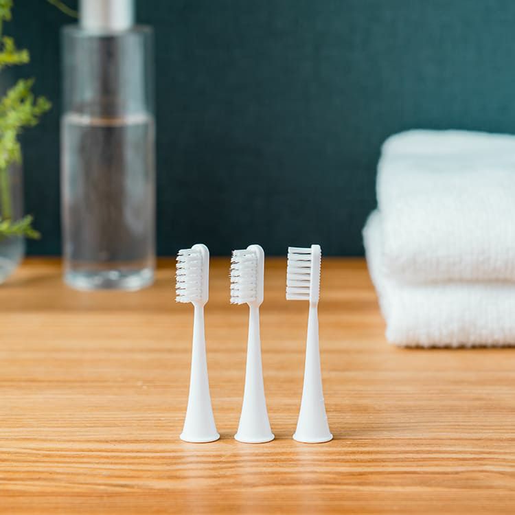 交換用歯ブラシヘッドx3本、識別ステッカー