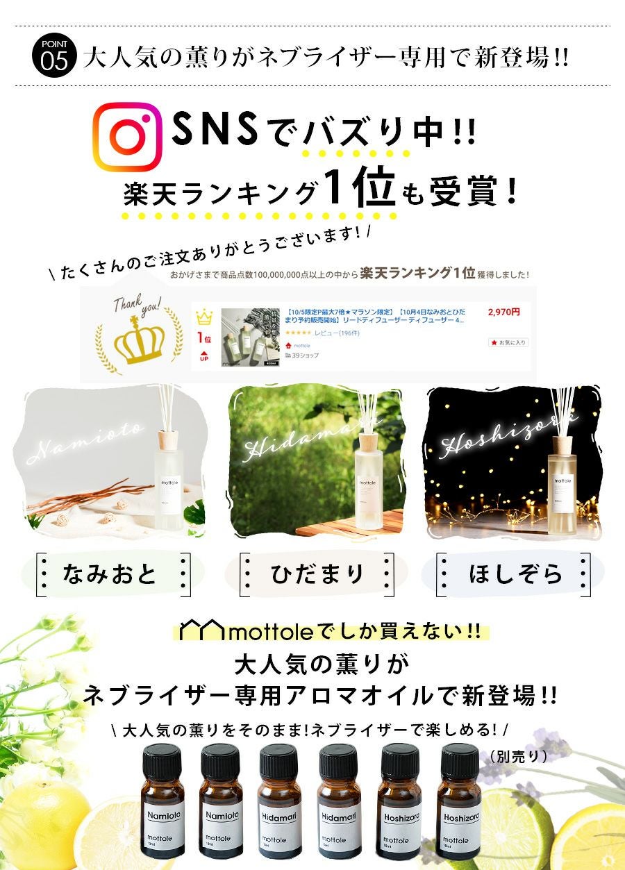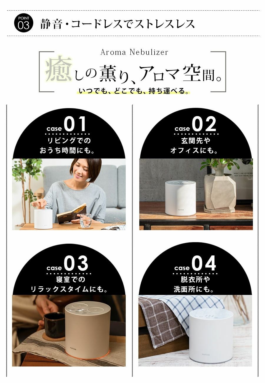他の画像を見る アロマディフューザー ネブライザー 水なし コードレス ダブル MTL-E033 ダブル アロマネブライザー ネブライザー ¥ 8,250 税込 在庫切れ 詳細を見る お気に入りに登録する