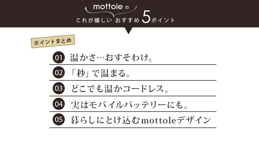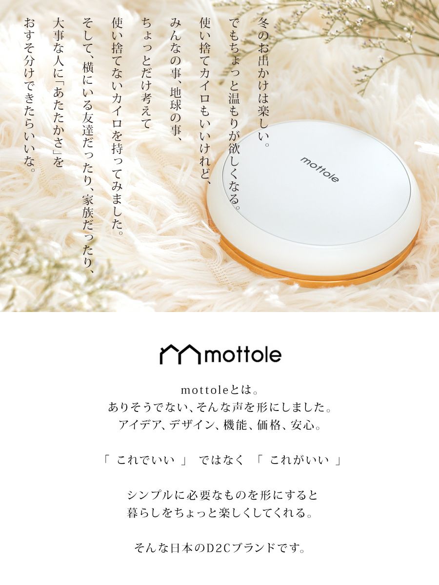 他の画像を見る カイロ 繰り返し 使える MTL-E035 mottole モットル 充電式カイロ 充電カイロ 電気カイロ カイロ かいろ コンパクト 速暖 かわいい おしゃれ 防寒グッズ 省エネ エコ 節電 ハンドウォーマー ¥ 2,350 税込 在庫切れ カートに入れる お気に入りに登録する
