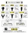| 本体(リチウムイオン電池内蔵)、シリコンアタッチメントx4、アタッチメントx2、USBコード、収納ケース、取扱説明書 |
