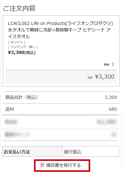 「領収書を発行する」ボタンよりダウンロードをお願いいたします。