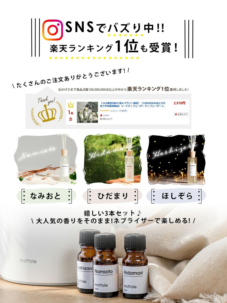 他の画像を見る 専用オイル 大容量 香り 薫り なみおと ひだまり ほしぞら MTL-A016 ネブライザー式アロマディフューザー 専用オイル 大容量200ml ¥ 3,070 税込 詳細を見る お気に入りに登録する